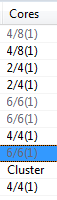 Als u toegang hebt tot een cluster en dit cluster wilt aanbieden, dan wordt dat als Cluster getoond in de kolom Cores.