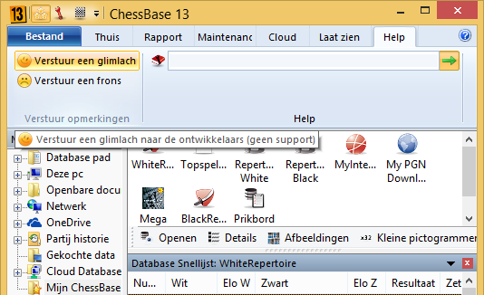 Via de Help knop kunt u informatie krijgen over de werking van het programma. U kunt ook de ontwikkelaars feedback geven met een glimlach of een frons.
