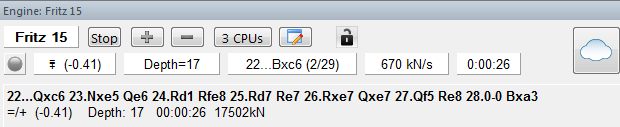In addition to the precise pawn values, the evaluation is also given in standard chess symbols: