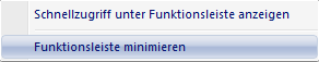 Der Anwender kann festlegen, ob die Symbolleiste unter den Ribbons oder in der Titelleiste des Programms angezeigt wird. Mit einem Rechtsklick kann diese Option angezeigt werden.