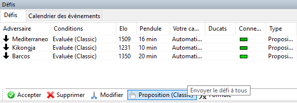 Si vous préférez choisir l'adversaire comme d'habitude avec la formule, vous pouvez envoyer votre défi pour des parties de Blitz "classique".