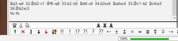 Die Information finden Sie unmittelbar über der Toolbar mit den Funktionen zur Bearbeitung der Notation. In dieser Zeile finden Sie auch die Information über Unterschiede in der Materialkonstellation der aktuellen Partie.