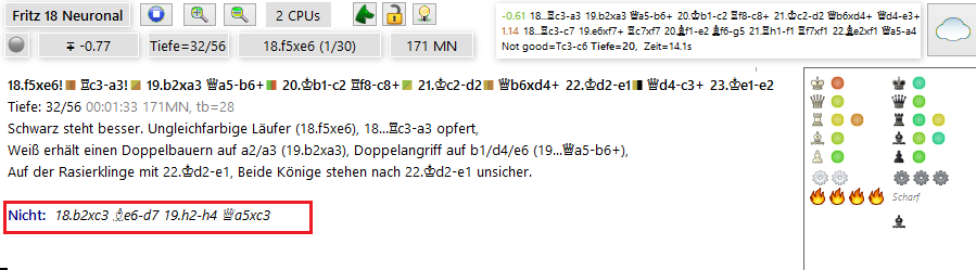 Der Vorteil dieser Anzeige ist, dass sie aktualisiert wird, wenn bei längerer Berechnung die Hauptvariante unverändert bleibt.
