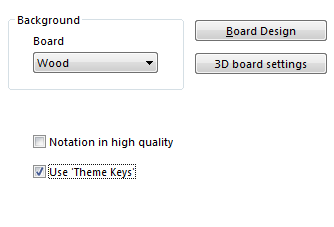 Board design: Set the board colours. You can get directly to that screen by right-clicking the board and selecting "Board design".
