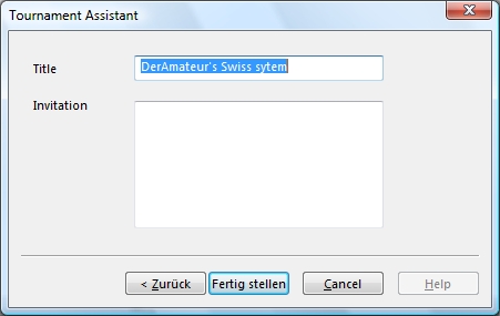 Note: You can give the extra playing time here (Playoff bonus) for White in the decisive game. After this you will get the Tournament assistent in which you can send out the announcement to the other players on the server.